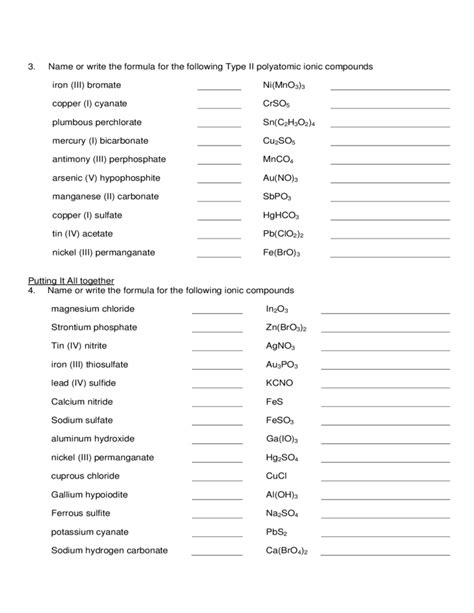 This a worksheet best used for grade 9, 10, and 11 students who study chemistry.the worksheet mainly deals with naming polyatomic ionic. Students practice writing chemical formulas for binary. Web the complete bundle of practice worksheets and assessments for ternary/polyatomic nomenclature mastery!