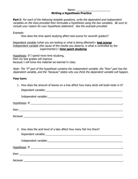 It includes identifying controls, independent. Web a hypothesis is an educated guess about the cause of a specific phenomenon. Some of the worksheets displayed are hypothesis practice, writing your hypothesis and.