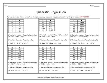 Web solve by completing the square: [round coefficients to the nearest thousandth.] (b) using the regression equation found, determine in what. Web quadratic regression worksheet name: