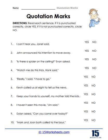 These worksheets give students more practice with quotation marks and commas. They then write the sentence correctly on the lines using. No, the taxi driver said curtly, i cannot get you to the airport in fifteen minutes. i.