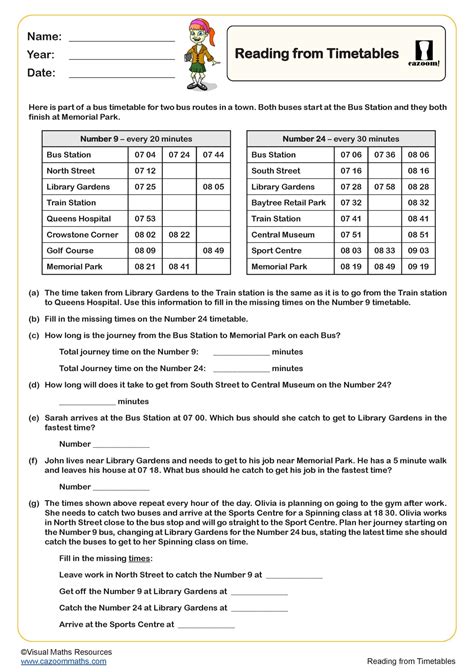 Reading Timetable exercise from www.liveworksheets.com