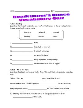 Web Roadrunner's Dance Reading Comprehension Quiz.